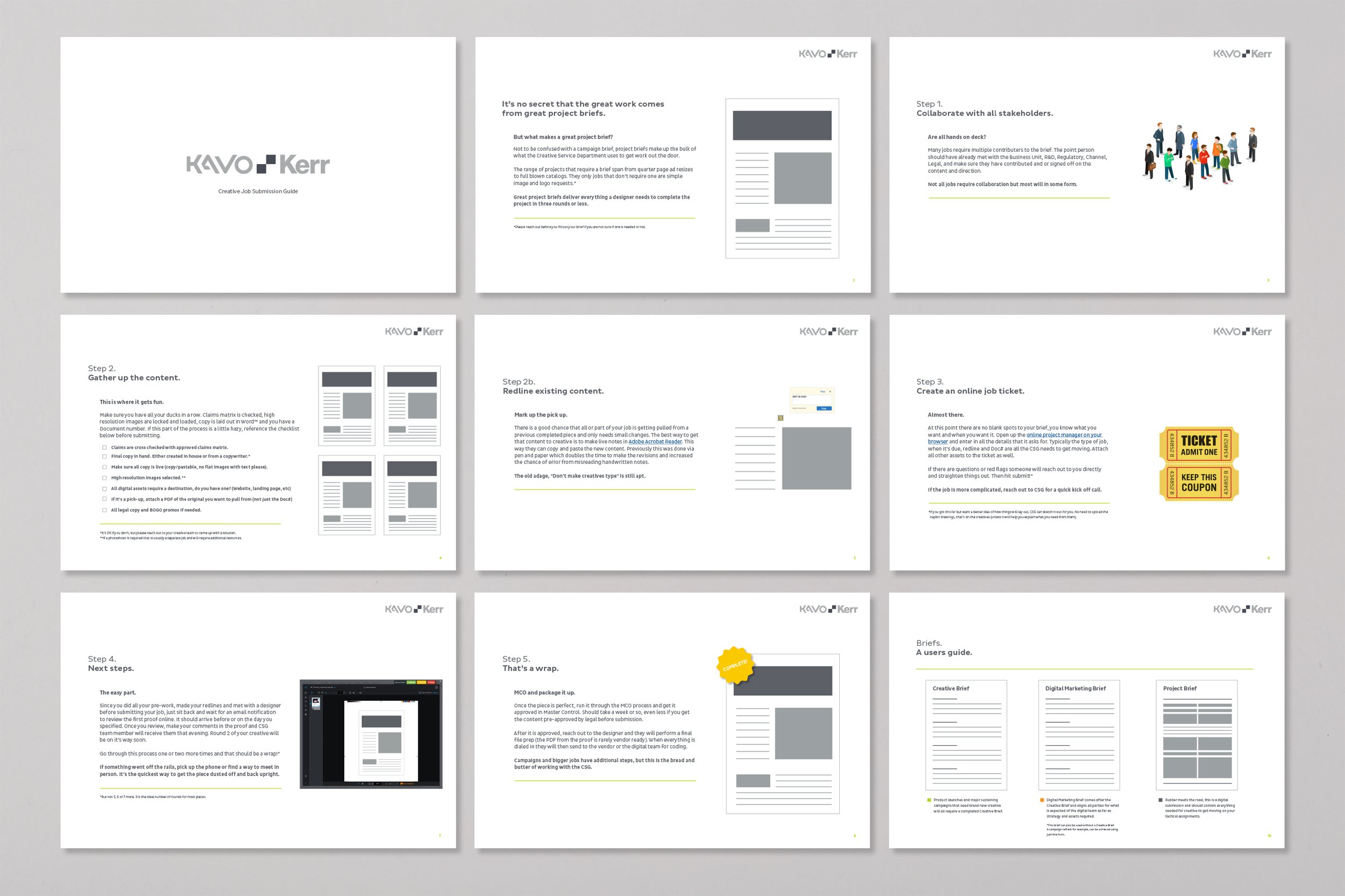 While not specifically asked for, I pitched the creation of a series of communication decks that were short form, easy to understand instructions for working with the new team. The marketing and creative team had tripled in a short amount of time, so solidifying process was paramount to making this brave new venture work without agency intervention. (And yes they were sold in and implemented immediately).