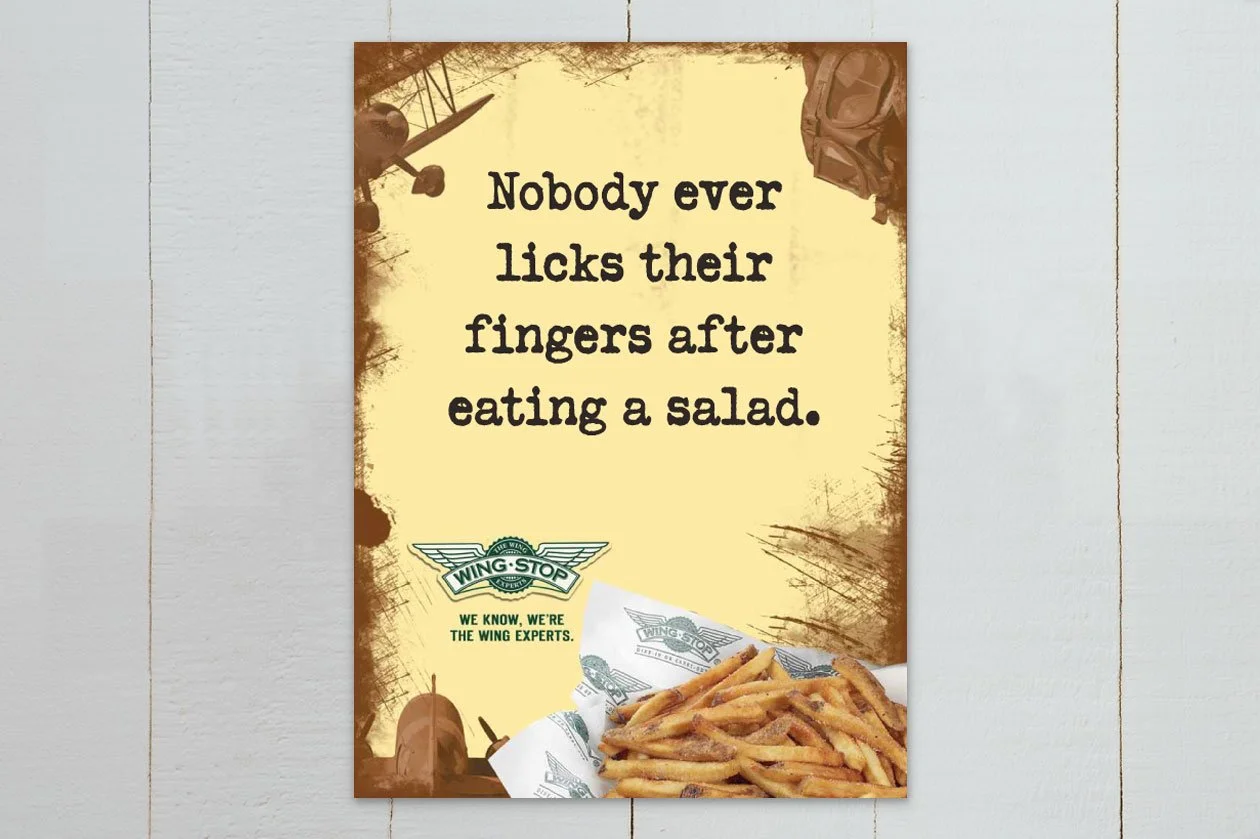 Wingstop came to us looking for a fresh take on their in-store brand signage. Utilizing existing aeronautical brand hallmarks, we gave the local test store locations a much needed injection of creativity on their walls and selected events.